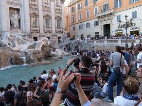 世界中からやって来た旅行者で賑わうトレビの泉。投げ入れられるコインの数だけ人々の願いが込められている(著者撮影、以下同)