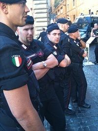 勤務中のはずのカラビニエーリ(憲兵)たちもレストランに設置されたテレビから流れるサッカーの試合に釘付けだ