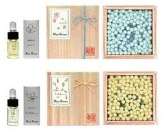 桐箱入り球状タイプの室内香も考案。オイルをたらし、蓋の開閉の度合で香りの強さを調整。欧州ではオイルに棒を浸すタイプが多いので、こちらは特別感たっぷり(写真 ©Miya Shinma)