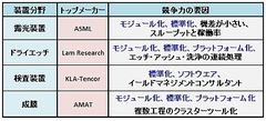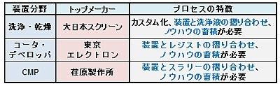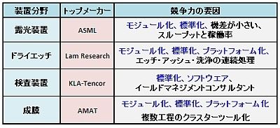 表2 日本が弱くなった装置分野