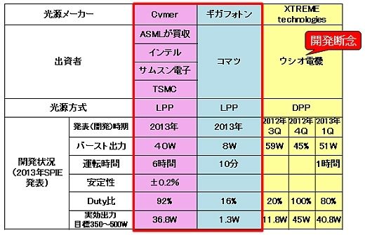 表1 EUVL光源メーカーの開発状況