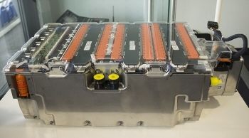 従来のVWグループSUVのハイブリッドモデルが使っていたニッケル水素電池からリチウムイオン電池になり、9.4kWhの容量を持つバッテリーパック。角形セル13個を1モジュールとしてそれを4パックずつ上下に重ねて合計104セル。この全てを直列につないだ定格電圧は384ボルトと高い。(写真:筆者)