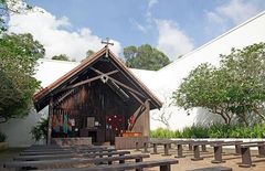 礼拝堂の中央に据えられた真鍮製の十字架は、瓦礫や鉄くずを材料や道具に使ってオーストラリア人の Harry Stodgen 軍曹によって作られたもの。来館者のメッセージや、日本の学生らによる千羽鶴などが掲げられ、静かに世界平和を祈る場となっている