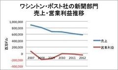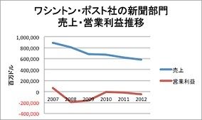 ニュース消費の変化に追いつけない大手メディア 人形焼の「重盛」(筆者撮影、以下同) (画像1/5) (画像2/5) ワシントン・ポスト社の売り上げの半分以上は、大学受験予備校である「Kaplan」があげ、利益の大半はケーブルテレビ事業がもたらす 拡大画像表示 (画像3/5) ワシントン・ポスト社の新聞事業は2008年度以降、一度も利益を出していない。ワシントン・ポスト紙の発行部数は32万部。3年で10%減少。同紙のウェブサイトの月間ページビュー(3.2億件)は3年で20%増加した。それでも利益貢献にはつながらない。アナログからデジタルへの移行の難しさである 拡大画像表示 (画像4/5) (画像5/5) ニュース消費の変化に追いつけない大手メディア この写真の記事を読む