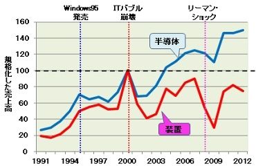 図2 半導体と製造装置の売上高(2000年で規格化)
