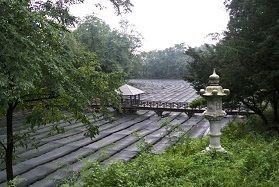 見渡す限りのわさび畑。わさびは日光を嫌うので、黒い幕で覆ってある