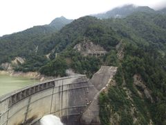 雄大な山の景色の中にある黒部ダム(筆者撮影)