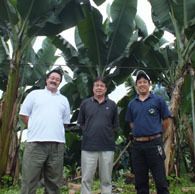 「田辺バナナ」の正裕さん(中央)、洋樹(ひろき)さん(右)、高橋力さん(左)