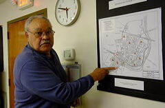 電力会社に「ウソ」をつかれた町長 ロバート・リード町長。原発事故時の指令室となる会議室で(筆者撮影、以下同) (画像1/3) バスのピックアップポイントを示すリード町長 (画像2/3) 町の地図と非常用電話 (画像3/3) 電力会社に「ウソ」をつかれた町長 この写真の記事を読む