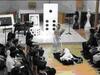 左:草間弥生「考えるかぼちゃ」白黒のチェスコマをはさんで右:クラウス・ファイファール「無題」舟越桂「夜が話しかける」おのおの本物の作品がインストールされた空間。聖アンデレ教会にて