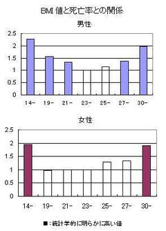 太り過ぎだけじゃない、痩せ過ぎも生活習慣病のリスク 出典:厚生労働省「国民健康・栄養調査」、「国立健康・栄養研究所」国民栄養の状況、文部科学省「学校保健統計調査」 注)1970年はデータなし。 (画像1/3) 図2 BMI値と死亡率の関係 (画像2/3) 出典: OECD Data, Health at Glance 2011 (画像3/3) 太り過ぎだけじゃない、痩せ過ぎも生活習慣病のリスク この写真の記事を読む