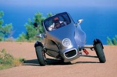 メルセデス・ベンツが1997年に製作、公開した実走コンセプトカー「F300」。前2輪・後1輪による「リーン(内傾)旋回」による新しい運動性を試み、かつ超小型モビリティの可能性を提案した事例の1つ。この後、4輪でタイヤのみ旋回時に内傾させる「F400」も製作、実験走行を行っているが、その先の展開は未だない。こうした技術的歴史を踏まえて次の提案をすることが新技術実装・実走コンセプトカーの役割である。(写真:Daimler)