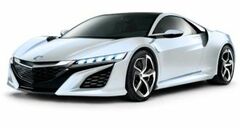東京モーターショーに出展された「NSX CONCEPT」(上)と、それに先行してアメリカで公開された「2代目NSX 試作車両」(下)。東京モーターショーに展示されたモックアップは量産スタイリング検討用かそれに近いもので、2012年初めの北米オートショーで展示されたイメージモデルよりはリアルなディテールを持つ。それでも生産を前提にした試作・開発試験車両と比べると、フロントマスクなどに外装の装飾部品がいろいろ付いていることを別にしても、プロポーションやボディ面の造形が生む雰囲気などに違いがある。これが「スタイリングモックアップ」と「現実のクルマ」の差である。(写真:本田技研工業)