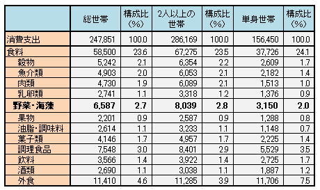 生鮮野菜の特売チラシはもういらない、「会話」を通して旬の野菜を食べよう 消費支出の費目別月平均額(平成24年度、一部抜粋) (出典:総務省統計局「家計調査H24より抜粋」) (画像1/2) 国内の総生産量と有機農産物の格付数量(平成24年度) (出典:農林水産省、消費・安全局 表示・規格課調べ) (画像2/2) 生鮮野菜の特売チラシはもういらない、「会話」を通して旬の野菜を食べよう この写真の記事を読む