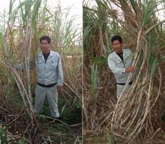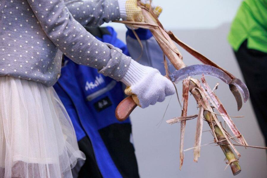 なぜか、ビール会社が「製糖」の常識を覆す! スタッフに手伝ってもらいながら、サトウキビ用の大きな鎌で葉を落とす (画像1/5) 葉を落としたサトウキビを圧搾機に通して水分を取り出す (画像2/5) 野村智彦氏 (画像3/5) 左が従来タイプ、右が高バイオマス量サトウキビ。根本の密度が違う。(写真提供:アサヒグループホールディングス) (画像4/5) 砂糖・エタノール複合生産プロセス(図表提供:アサヒグループホールディングス) (画像5/5) なぜか、ビール会社が「製糖」の常識を覆す! この写真の記事を読む