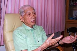 1922年8月京都市出身 44年9月神戸高等商船学校卒、海軍少尉 11月空母「海鷹」 45年1月戦艦「長門」 5月駆逐艦「初桜」 6月海軍中尉 復員・石炭輸送業務を経て49年海上保安庁入庁 巡視船「宗谷」首席機関士、同「のじま」機関長、第三管区海上保安本部船舶技術部長などを歴任 82年退職(筆者撮影)