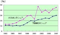 装置メーカーと「共退化」した日本半導体 図1 半導体の国籍別シェアの推移 (出所:ガートナーデータクエスト) 拡大画像表示 (画像1/5) 図2 半導体製造装置の国籍別シェア (出所:ICガイドブック) 拡大画像表示 (画像2/5) 図3 日本の半導体シェアと装置シェアを並べて描いたグラフ 拡大画像表示 (画像3/5) 図4 植物の進化 拡大画像表示 (画像4/5) 図5 TSMCとASMLは共進化しているのではないか?(プレスジャーナルおよび大和総研のデータを基に筆者作成) 拡大画像表示 (画像5/5) 装置メーカーと「共退化」した日本半導体 この写真の記事を読む