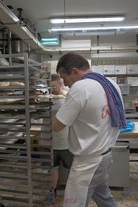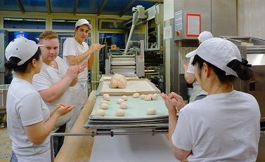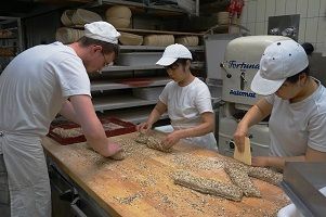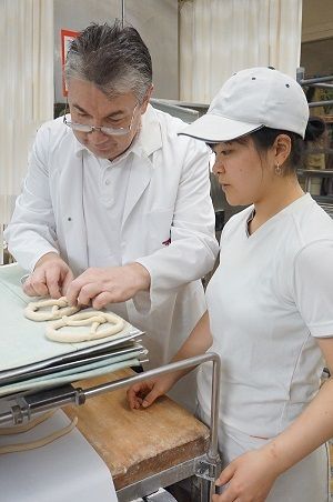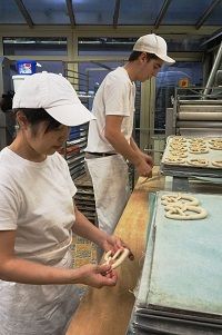 「日本人見習い大歓迎!」の老舗ドイツパン工房 ホフマンの店頭で、お客さんの行列に対応する店員たち。ミュンヘン中央駅からトラムで20分。品質を保つため、支店を開くことはないとハインツ・ホフマン氏は断言する(筆者撮影:以下同) (画像1/11) 見習い2年目を迎えた鳥山千里さん (画像2/11) 大澤千尋さんは今年の秋から見習いを始めた(中央奥) (画像3/11) 2人の同僚はドイツ人ばかり (画像4/11) 「ホフマン」では手作りのお菓子も販売。ホフマン氏の息子さんが製パンに続いて、現在ここで製菓を修行中 (画像5/11) 大量のパン生地! ホフマンでは、アーモンドは米国産など輸入物も使うが、食材豊かな地元バイエルン地方産の材料を選ぶようにしている (画像6/11) 成形したパンをチェック。パン作りは天候などとの調整が必要で、毎日同じ味のパンを作ることは、実はそれほど簡単ではないという (画像7/11) ドイツのパンとして有名なプレッツェルをクルクルと手早く1個8秒ほどで成形する大澤さん。「コツがいるんですよ」とのこと (画像8/11) 焼き上がったパンの数々。「1日に何個焼くか分かりませんね。とにかく大量です」とホフマン氏は笑う (画像9/11) ホフマンの4代目、ハインツ・ホフマン氏と鳥山さん。「ホフマンさんは私たちにいつも丁寧に話してくれます。とても優しい人です」 (画像10/11) カフェエリアでは、くつろいで食事やお茶を楽しめる (画像11/11) 「日本人見習い大歓迎!」の老舗ドイツパン工房 この写真の記事を読む