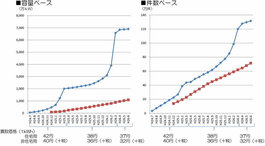 いよいよ終焉に向かう太陽光発電バブル 2014年6月末時点における再生可能エネルギー発電設備の導入状況 (経済産業省 資源エネルギー庁の資料より) 拡大画像表示 (画像1/3) 固定買取価格制度の基本的な仕組み (経済産業省 資源エネルギー庁の資料より) 拡大画像表示 (画像2/3) 太陽光の導入量と認定量の比較 (経済産業省 資源エネルギー庁の資料より) 拡大画像表示 (画像3/3) いよいよ終焉に向かう太陽光発電バブル この写真の記事を読む