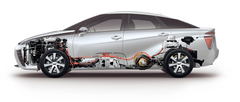 トヨタ「ミライ」が突き当たるエネルギーインフラの現実 (画像1/5) トヨタが世界初の「燃料電池を動力源とした市販乗用車」として送り出した「MIRAI」。外観スタイリングだけは今の常識的なクルマたちとは違って見える造形をしてきた(写真:トヨタ自動車、以下同) (画像2/5) (画像3/5) 既存の車両レイアウトの中で、燃料電池を前席下、水素ガスボンベの1本を後席下(内燃機関ならば燃料タンクを置く場所)、もう1本と走行用モーターに送る電力を蓄える電池をトランクルーム前部、と空いている場所を見つけて組み込んだ形である。そのために床面がやや高いSUV系の車両レイアウトと骨格を下敷きにしている (画像4/5) ミライの車体骨格。薄板鋼板をプレス成形してスポット(点)溶接で組み上げた、今の日本で生産されている乗用車の車体そのままであり、燃料電池スタックと水素ガスボンベを収めるために床面に大きな凹凸が並んでいる(構造的には不利)ことを除けば、これが先進的な動力システムで走るクルマのために作られたものだと見てとれる部分はない (画像5/5) トヨタ「ミライ」が突き当たるエネルギーインフラの現実 この写真の記事を読む