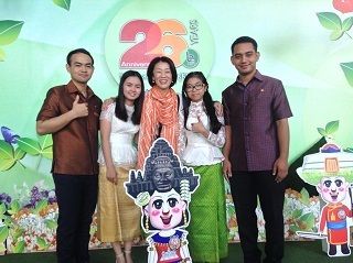 カンボジア代表チームと筆者。カンボジアをイメージした番組キャラクターの「ABUBU」と(写真提供:筆者、以下同)