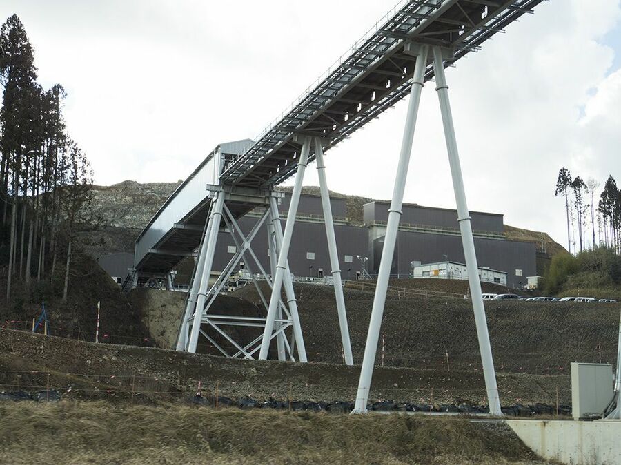 気仙川の扇状地に広がっていた町並みの全てが消えて更地が広がる陸前高田では、延長3キロメートルに及ぶ大型土砂搬送ベルトコンベアが上空を横切って伸び、仮置き場に四角い土の山が姿を見せ始めている。1日にダンプトラック4000台分、2万立方メートルの土砂を移送でき、土砂移送に要する期間をダンプトラック利用の9年から2年に短縮できるという。とはいえこの仮置き場からさらに大型ダンプなどを使って山側まで土砂を動かして積み上げ、そこに10メートル嵩上げした地盤を築き、その上に市街区域(住宅地はさらに山側を削った地域)を建設しようという計画の第一段階にすぎない。現場に立つと、自然の姿を残さない人工地形を力技でつくる試み、という印象は否めない