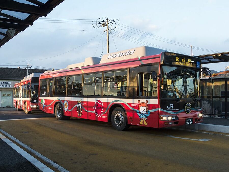 地震と津波で寸断されたJR東日本・気仙沼線と大船渡線の「暫定措置」として2012年末から運行が始まったBRT。ここ1年で専用区間(軌道改造)がだいぶ増え、路線も伸びた。運行頻度や使われ方は鉄道と同様で、朝夕の通学(主に高校)時間帯だけは乗客が増える。通学定期利用客の運賃収入への依存度が高いのは、日本の地方鉄道の多くに共通。このやり方ではBRTが本来持っている可能性を引き出すことはできないし、路線需要も衰退する可能性が高い。新たな発想で地域に根ざした公共交通インフラを創出する好機なのだが