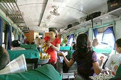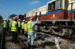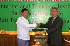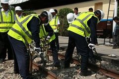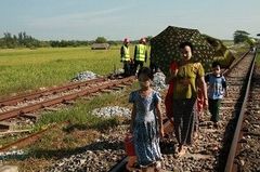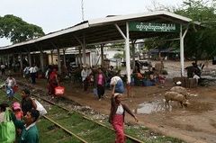 ミャンマーの鉄道整備に奔走する日本人技術者 保線作業の手を止め列車を見送る技術者たち。運転手がエールの代わりに汽笛を鳴らした(筆者撮影、以下同) (画像1/8) 列車の中ではお弁当や水、パン、ゆでトウモロコシなどを販売する売り子が頻繁に行き交う。ミャンマー版車内販売だ。 (画像2/8) 駅では売り子も家畜も一緒に列車の到着を待っている (画像3/8) (画像4/8) 2人1組で古い枕木を持ち上げ、線路の下から外す (画像5/8) ミャンマーの線路は生活道路でもある。作業の合間に親子連れが通り過ぎた (画像6/8) 保線機材の贈呈式で握手するミャンマー鉄道運輸省のタン・テー大臣(左)と鷲頭誠JITI所長 (画像7/8) 贈呈されたタイタンパーのデモンストレーションの様子 (画像8/8) ミャンマーの鉄道整備に奔走する日本人技術者 この写真の記事を読む