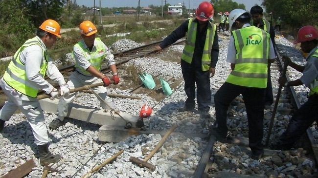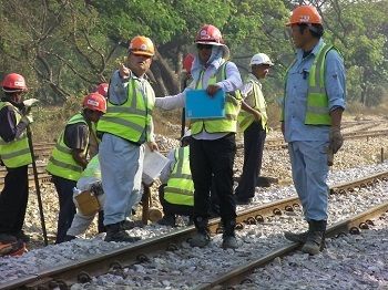 ミャンマー支援が日本の技術を伝承、躍進させる 2人一組で掛け声を掛けながら枕木を持ち上げるOJT生とミャンマー人エンジニアたち(筆者撮影、以下同) (画像1/8) 列車がヤンゴン駅を発車する直前、専門家から測定の流れについて説明を受けるOJT生たち (画像2/8) 動揺測定器を床に固定する濱尾さん (画像3/8) 軌道整備前(上)と後(下)の列車動揺の測定例(日本鉄道施設協会誌 2014年2月号より転載) (画像4/8) 座席の上に置かれた測定器のデータはパソコンに送られる (画像5/8) 測定器から出力される波動にメモする菅原さん (画像6/8) 保線の現場でミャンマー人と一緒に日本人専門家(左)から指導を受ける (画像7/8) 保線作業の合間にミャンマー鉄道の技術者とほっと一息。毎日一緒に汗を流す同志だ (画像8/8) ミャンマー支援が日本の技術を伝承、躍進させる この写真の記事を読む