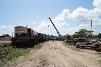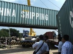 ヤンゴン港からマンダレーの貨物基地までコンテナを鉄道で運ぶ実証実験が行われた(写真提供:山九)