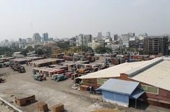 カントリークレーンからヤンゴン港のコンテナヤードを一望する(筆者撮影)