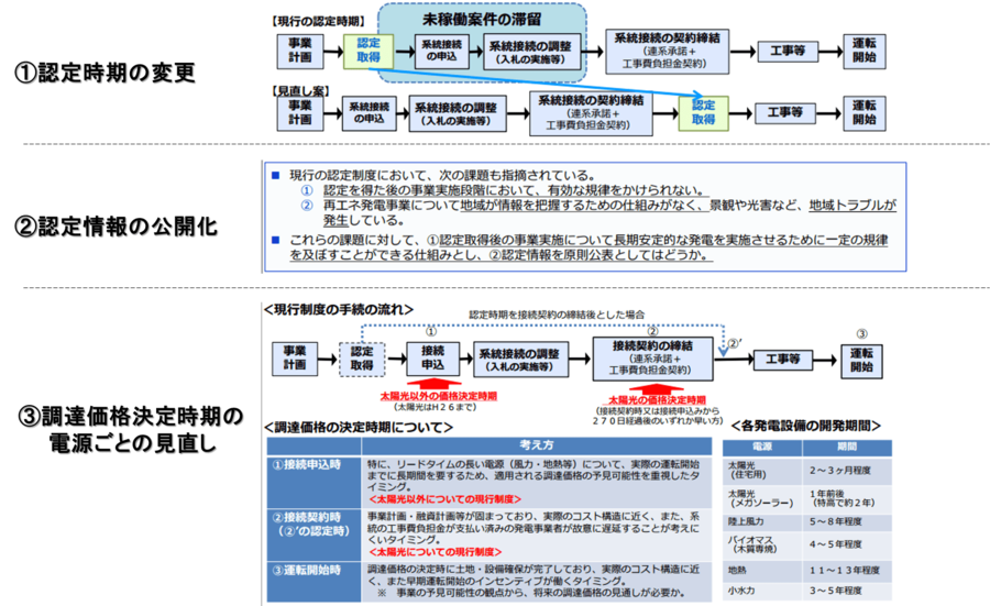 再生可能エネルギー政策の抜本的見直しが始まる (画像1/3) 現行制度の手続きに関する3つの見直し(経済産業省資料より筆者作成) 拡大画像表示 (画像2/3) 再エネ電源の買取と電力系統網への接続について(経済産業省資料より筆者作成) 拡大画像表示 (画像3/3) 再生可能エネルギー政策の抜本的見直しが始まる この写真の記事を読む