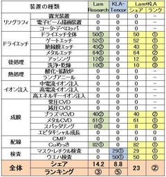 半導体業界に大型M&Aの波が到来!米ラムリサーチが米KLA-Tencorを買収へ 図1 半導体業界のM&Aの規模 出所:2010~2014年はIC Insights、2015年は筆者推定 (画像1/3) 図2 半導体製造装置の売上高ランキング(2014年) 出所:Worldwide IC Manufacturing Equipment Sales (VLSI Research, April 2015) (画像2/3) 図3 Lam ResearchとKLA-Tencorの装置シェアとランキング(2013年実績) 出所:電子ジャーナル『半導体製造装置データブック2014』 (画像3/3) 半導体業界に大型M&Aの波が到来!米ラムリサーチが米KLA-Tencorを買収へ この写真の記事を読む