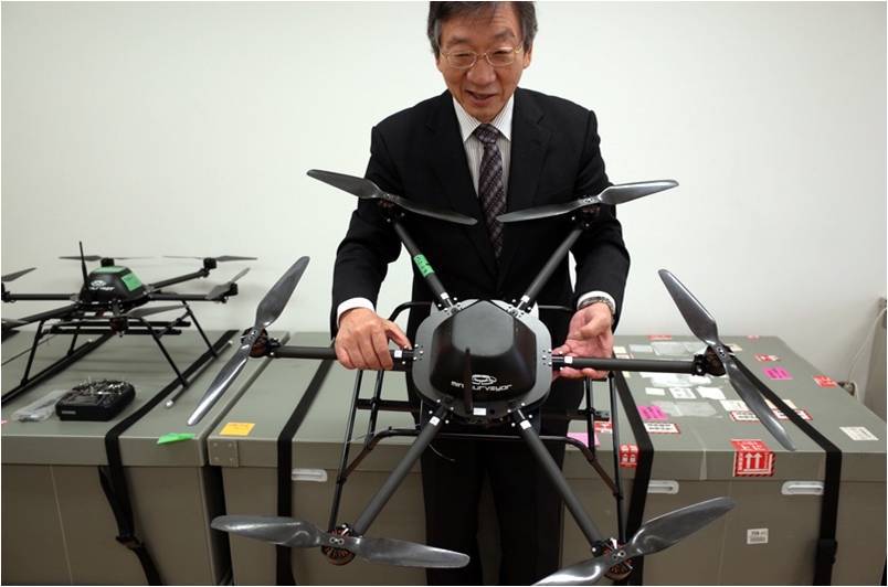産業用ドローンはブレイク前夜、離陸へのカギは? 自律制御システム研究所が開発・販売をする産業向けドローン「ミニサーベイヤー」を持つ野波さん。これまでに100台以上を出荷しているという (画像1/2) 野波健蔵(のなみ・けんぞう)氏。1972年福井大学卒。79年東京都立大学大学院修了。工学博士。85~93年NASAシニア研究員、千葉大学助教授等 を経て、94年千葉大学教授就任。80年代より自律制御ロボットの研究を開始し、90年代半ばからは、紛争地帯に残された地雷除去や海底測量、送電線の高 所点検作業向けの作業ロボットを次々と開発する。2005年よりマルチーローターヘリの自律制御研究を本格化させ、大小さまざまなモデルを開発。2014 年特別教授に就任。13年には大学ベンチャーである自律制御システム研究所を設立。現在、代表取締役社長。 (画像2/2) 産業用ドローンはブレイク前夜、離陸へのカギは? この写真の記事を読む