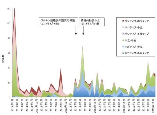 図2 子宮頸がんワクチン報道における新聞の論調推移 (Clin Infect Dis. 2016, in press, doi: 10.1093/cid/ciw647より改変)