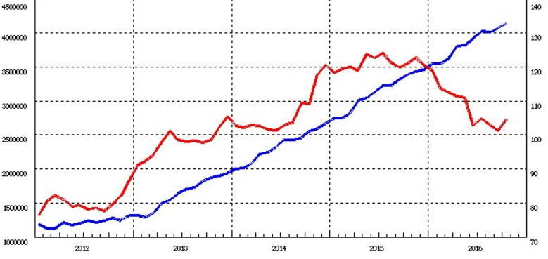 黒田日銀総裁の「敗北宣言」は新たな戦いの始まり 日銀はこれから先、強気を装いながら撤退する、きわめて微妙な心理戦を強いられる (画像1/2) マネタリーベース(青・億円)と為替レート(右軸・ドル/円)、出所:日銀 拡大画像表示 (画像2/2) 黒田日銀総裁の「敗北宣言」は新たな戦いの始まり この写真の記事を読む