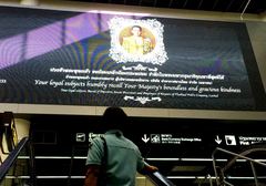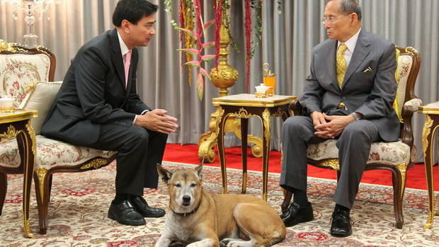 プミポン国王大誤算、タイ君主制が存続の危機に 空港の離発着の電光掲示板にも、巨大な国王の写真と追悼メッセージが掲げられている(筆者撮影) (画像1/3) アピシット元首相と会談する生前のプミポン国王。足元にはいつもトーンデーンがいた(出典:DNA) (画像2/3) 日系企業でも会社の正門に国王の写真と哀悼のメッセージが飾られている(筆者撮影) (画像3/3) プミポン国王大誤算、タイ君主制が存続の危機に この写真の記事を読む