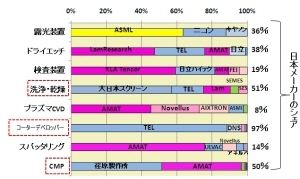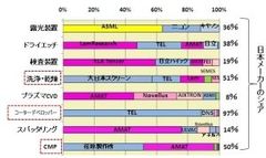 図2 主要な半導体製造装置の世界トップシェアメーカー(2007年)