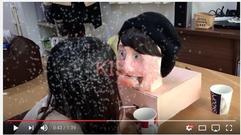 『イケメンキスマシーン』顔を近づけると唇が飛び出す仕組みのキスロボット(動画=https://youtu.be/-xZrNqT9xPQ