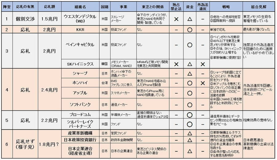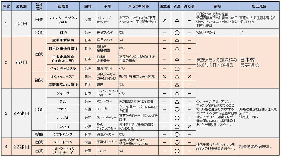 日米韓連合が東芝メモリの売却先として最悪な理由 「東芝メモリ」の売却先は日米韓連合と報じる新聞を手にして怒りをあらわにする鴻海の郭台銘会長(2017年6月22日、写真:ロイター/アフロ) (画像1/4) 図1 東芝メモリ買収の優先交渉権を得た「日米韓連合」 (画像2/4) 表1 2次入札(5月19日)の結果 拡大画像表示 (画像3/4) 表2 6月中旬頃に4陣営に集約された 拡大画像表示 (画像4/4) 日米韓連合が東芝メモリの売却先として最悪な理由 この写真の記事を読む