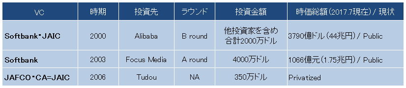 早期の日系VCによる投資案件例(出所:IT柚子)