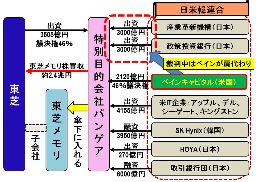 東芝が上場廃止のダメージを最小限にする方法 会見する成毛・東芝メモリ社長と杉本・ベインキャピタル日本代表(2017年10月13日、写真:AP/アフロ) (画像1/2) 図1 東芝メモリを買収する「日米韓連合」 (注:出資金額などは一部筆者の推定値) (画像2/2) 東芝が上場廃止のダメージを最小限にする方法 この写真の記事を読む