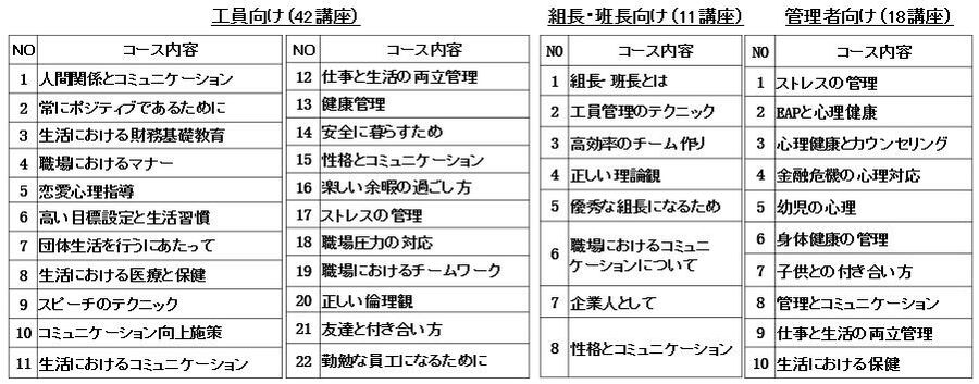 富士ゼロックスシンセン、現地社員に充実の社会人教育 富士ゼロックスシンセンの工場(写真提供:富士ゼロックス) (画像1/5) 『最強の工場をつくる48の工夫』(一般社団法人 日本能率協会 GOOD FACTORY研究会著、日経BP社) (画像2/5) 教育コースに参加している社員の様子(写真提供:富士施楽高科技) (画像3/5) 富士施楽高科技が用意している様々なEPA教育コース(富士施楽高科技の資料より、以下同) 拡大画像表示 (画像4/5) 社員に対するEAP活動の実施項目 (画像5/5) 富士ゼロックスシンセン、現地社員に充実の社会人教育 この写真の記事を読む