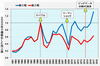 図6 2000年で規格化した前工程と後工程の装置市場推移