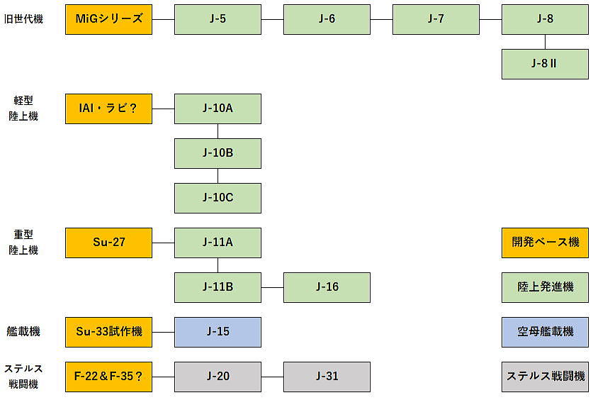 中国の最新ステルス機の形状、プラモで検証してみた 中国軍の「J-20」(手前)と「J-31」(奥)のプラモデル(以下、プラモデルは筆者作成) (画像1/8) 中国軍戦闘機の大まかな系譜 (画像2/8) 中国のJシリーズ戦闘機一覧(各種公開情報を基に筆者が作成) 拡大画像表示 (画像3/8) 左が「J-20」。右が「MiG-29」。いずれも1/72プラモデル(Mig-29はタミヤ製)。J-20の機体の大きさがよく分かる (画像4/8) 中国軍「J-20」のプラモデル (画像5/8) 中国軍「J-31」のプラモデル (画像6/8) アメリカ空軍のF-35A(出所:Wikimedia Commons) (画像7/8) 米中ステルス機の主要諸元比較 (航空自衛隊サイト、百度百科等を参照して作成、カナード面積は含まず) (画像8/8) 中国の最新ステルス機の形状、プラモで検証してみた この写真の記事を読む