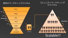 【図】「既存のマーケティングファネル」と「コミュニティマーケティングのファネル」