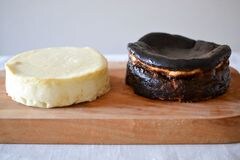 白と黒のチーズケーキ。白は高知県産ヤギチーズと柚子果汁を使用。黒はバスクチーズケーキ