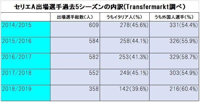 ぼやく代表監督、「39%」が示すセリエAの憂鬱 名将・マンチーニも歴代指揮官が抱いた悩みに直面した。写真:ロイター/アフロ (画像1/3) 今シーズンは第3節終了時点のもの。編集部作成 (画像2/3) イタリアがモデルにしたリーガ。自国選手が多くプレーし代表も華々しい結果を誇った。編集部作成 (画像3/3) ぼやく代表監督、「39%」が示すセリエAの憂鬱 この写真の記事を読む