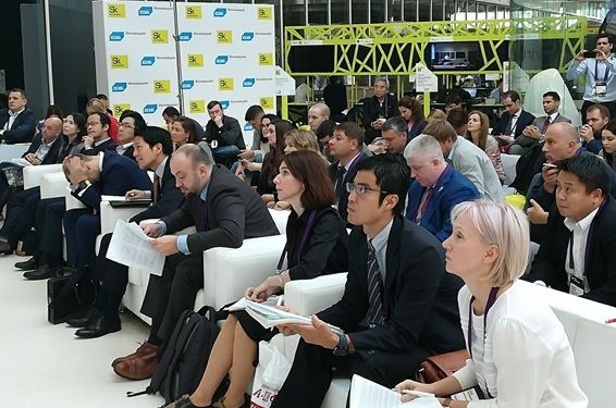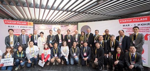 上月大使を迎えての「Startup Village」のジャパン・パビリオン開会式 2日間のイベントを支えたのはロシア人高校生、日本人留学生によるボランティアであった。写真はsk.ru