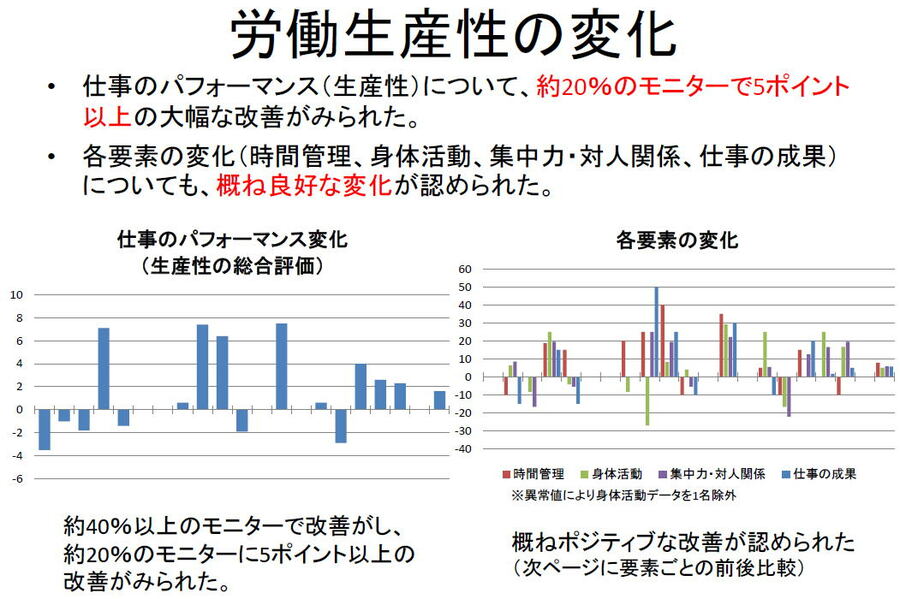 会社の発展は社員の健康づくりから、フジクラが実践 会社にとって、社員の健康づくりも働き方改革の重要な施策である(写真はイメージ) (画像1/9) フジクラCHO補佐の浅野健一郎さん (画像2/9) 打ち合わせスペースの一角にある「うんてい」。カラフルな鉄にぶら下がれば、ユニークなアイデアも生まれそうだ (画像3/9) 打ち合わせスペースのモニターには、「スタンディング会議」の情報が。立つだけでも消費カロリーがアップするが、スクワット気味で打ち合わせをすれば消費カロリーが大幅にアップする (画像4/9) 脳波計では、ストレスがかかっているかどうか、緊張やリラックスの度合いなどメンタルの状態を把握できる (画像5/9) 人気の社内イベント、ウォーキングラリーのバーチャル画面。お遍路で人気の四国八十八か所巡りがモチーフ (画像6/9) 社員の月次平均歩数(青い棒グラフ)が「適正レベル」になった 拡大画像表示 (画像7/9) (画像8/9) 職場診断の結果例 (画像9/9) 会社の発展は社員の健康づくりから、フジクラが実践 この写真の記事を読む